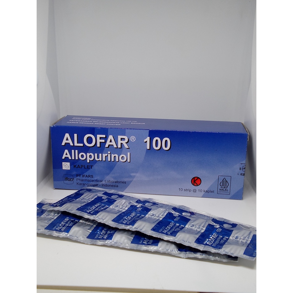 ALOFAR 100 MG TABLET merupakan obat dengan kandungan Allopurinol 100 mg per tablet. Allopurinol adalah obat yang digunakan untuk menurunkan kadar asam urat dalam darah. Obat ini bekerja untuk menurunkan konsentrasi asam urat dalam darah dan urine sehingga dapat mencegah terjadinya nyeri sendi akibat penumpukan asam urat atau mencegah peningkatan kadar asam urat dalam darah bagi pasien yang sedang menjalani kemoterapi kanker.