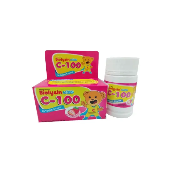 BIOLYSIN KIDS C-100 merupakan produk dengan kandungan vitamin C yang dapat membantu memenuhi kebutuhan vitamin C. Vitamin C berperan sebagai suplementasi Vitamin C pada keadaan sariawan, pendarahan gusi, dan kondisi penyembuhan setelah sakit.