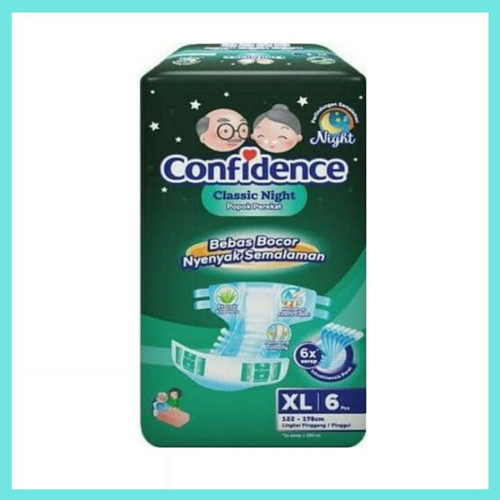 Confidence Popok Dewasa Classic Night merupakan popok celana untuk kondisi lansia aktif (inkontinensia) yang mudah digunakan. Bentuknya pas di badan, tidak menggelembung ketika dipakai dan serasa menggunakan celana dalam biasa. Confidence Popok Dewasa Classic Night memiliki daya serap yang tinggi atau Extra Absorbency sehingga bisa dipakai lebih lama dan orang tua tidak perlu khawatir ketika tidak sempat mencari toilet. Dengan teknologi Side Leak Guard yang memiliki pelindung samping anti bocor sehingga tidak perlu khawatir terjadi kebocoran. Orang tua menjadi lebih “Confidence” untuk beraktivitas sehari-hari. Permukaan luarnya berbahan Clothlike selembut kain (bukan plastik) sehingga terasa sejuk saat digunakan, tidak panas dan membuat kulit nyaman serta tidak menyebabkan iritasi pada kulit. Bahan bagian pinggang bersirkulasi udara sehingga tidak panas, mencegah terjadinya kelembapan dan tidak menyebabkan iritasi. Confidence Adult Pants memiliki Anti Bacteria yang membantu mencegah timbulnya bakteri yang dapat menyebabkan kulit iritasi.