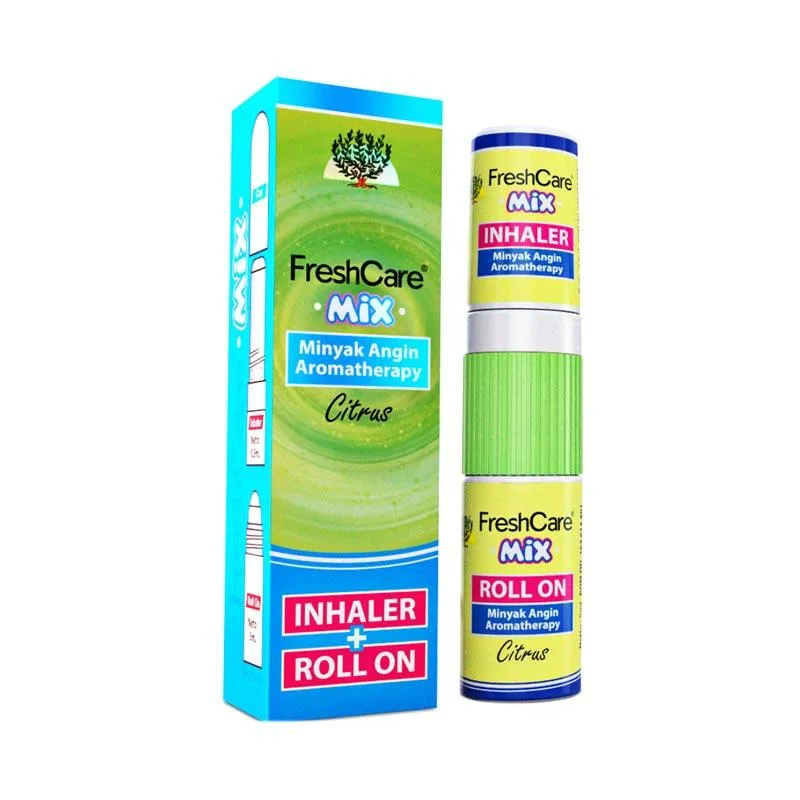 FRESH CARE MIX CITRUS INH&ROLL ON 5ML merupakan inovasi terbaru dari freshcare yakni minyak angin aromatherapy 2 in 1. Dalam satu produk ada inhaler dan roll on di mix jadi satu. FreshCare Mix dua gaya dalam satu genggam.