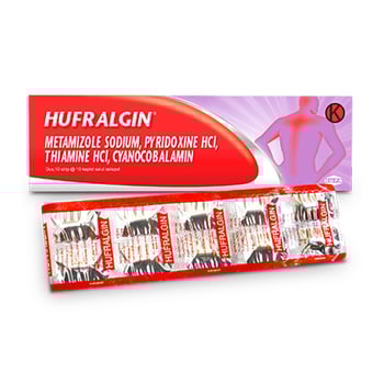 HUFRALGIN KAPLET merupakan obat dengan kandungan Methampyron, Thiamine HCl, Pyridoxine HCl, Cyanocobalamin. Methampyron bekerja sebagai antiinflamasi, analgesik melalui penghambatan prostaglandin dengan menghambat enzim cyclooxygenase. Vitamin B (Thiamine HCl, Pyridoxine HCl, Cyanocobalamin) untuk membantu mengatasi nyeri terkait gangguan saraf seperti neuritis atau neuralgia. Obat ini digunakan untuk pengobatan pada dismenore primer, meredakan nyeri ringan hingga sedang, meredakan gejala dan tanda osteoarthritis, meredakan gejala dan tanda rheumatoid arthritis. Dalam penggunaan obat ini HARUS SESUAI DENGAN PETUNJUK DOKTER.