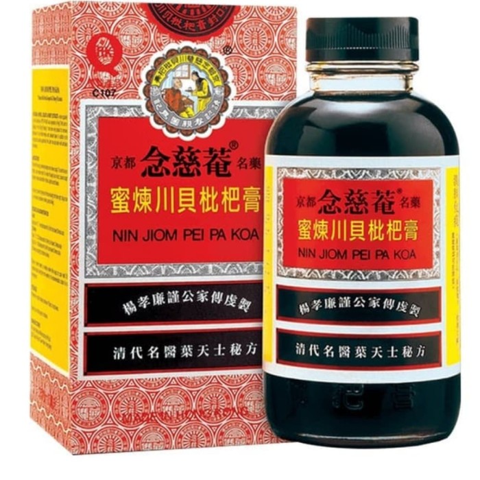 Bulbus Fritillariae Cirrhosae 852 mg, Folium Eriobotryae 195 mg, Radix Adenophorae 27 mg, Poria 27 mg, Exocarpium Citri Grandis 120 mg, Radix Platycodonis 72 mg, Rhizoma Pinelliae Preparatum 27 mg, Fructus Schisandrae Chinensis 5 mg, Semen Trichosanthis 27 mg, Flos Farfarae 120 mg, Radix Polygalae 120 mg, Semen Armeniacae Amarum 21 mg, Rhizoma Zingiberis Recens 27 mg, Radix Glycyrrhizae 780 mg, Mentholum 35 mg, Aqua Armeniacae 213 mg, Mel 3870mg, Syrup Q.S. to 100gr