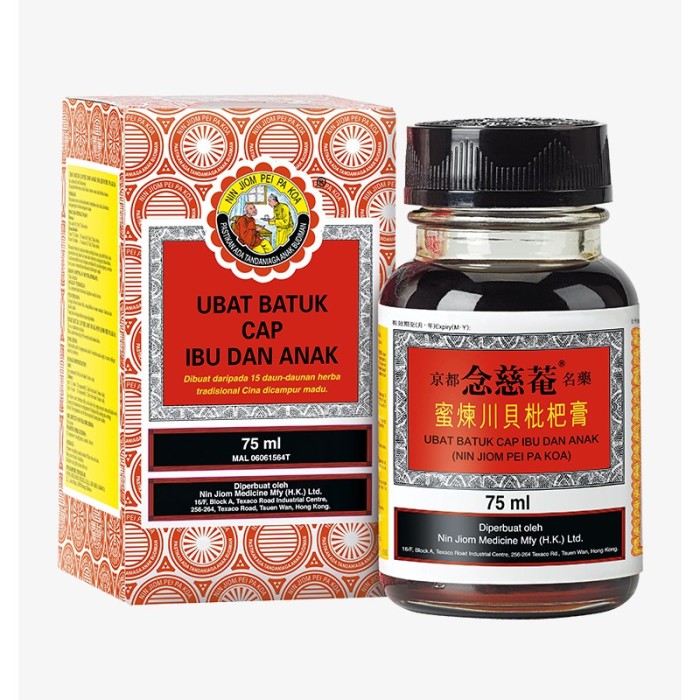 Bulbus Fritillariae Cirrhosae 852 mg, Folium Eriobotryae 195 mg, Radix Adenophorae 27 mg, Poria 27 mg, Exocarpium Citri Grandis 120 mg, Radix Platycodonis 72 mg, Rhizoma Pinelliae Preparatum 27 mg, Fructus Schisandrae Chinensis 5 mg, Semen Trichosanthis 27 mg, Flos Farfarae 120 mg, Radix Polygalae 120 mg, Semen Armeniacae Amarum 21 mg, Rhizoma Zingiberis Recens 27 mg, Radix Glycyrrhizae 780 mg, Mentholum 35 mg, Aqua Armeniacae 213 mg, Mel 3870mg, Syrup Q.S. to 100gr
